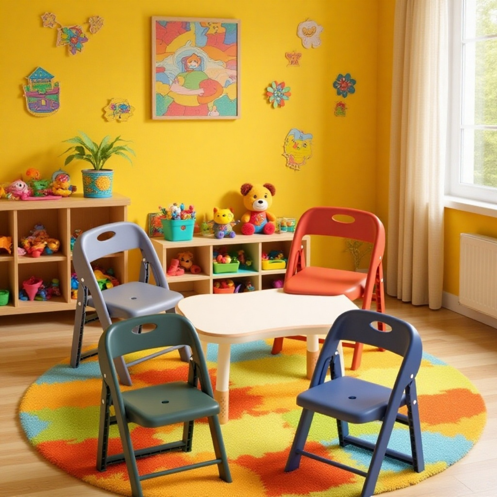 ● Skládací přenosná dětská židle je vyrobena z kvalitního zesíleného plastu, který zajišťuje vysokou odolnost a dlouhou životnost při každodenním používání ve školkách.