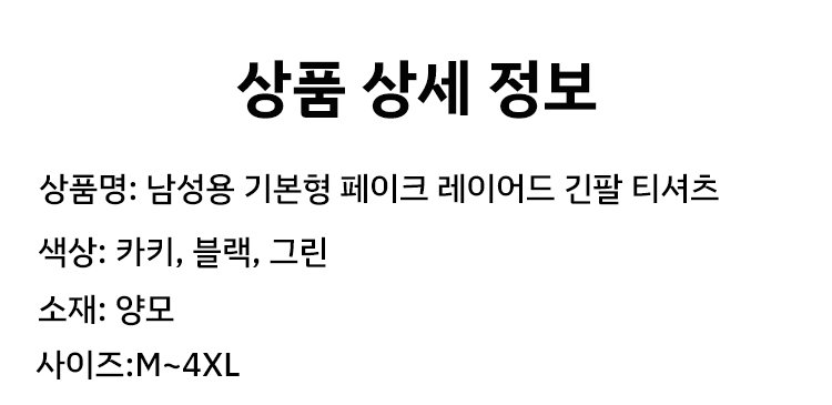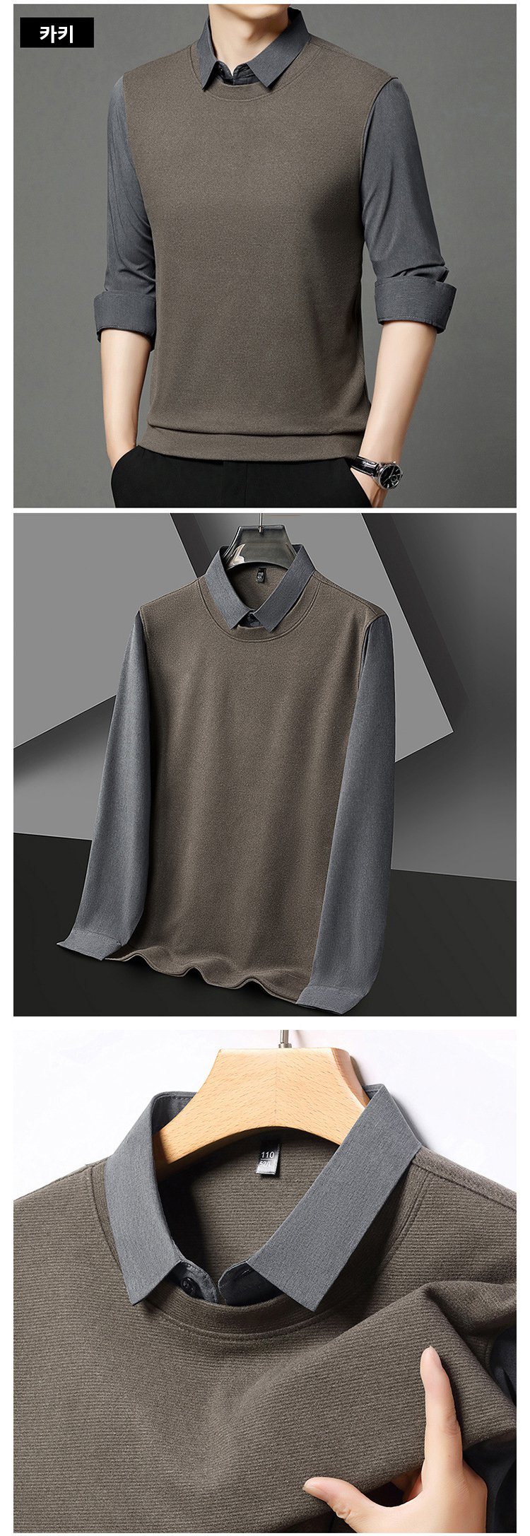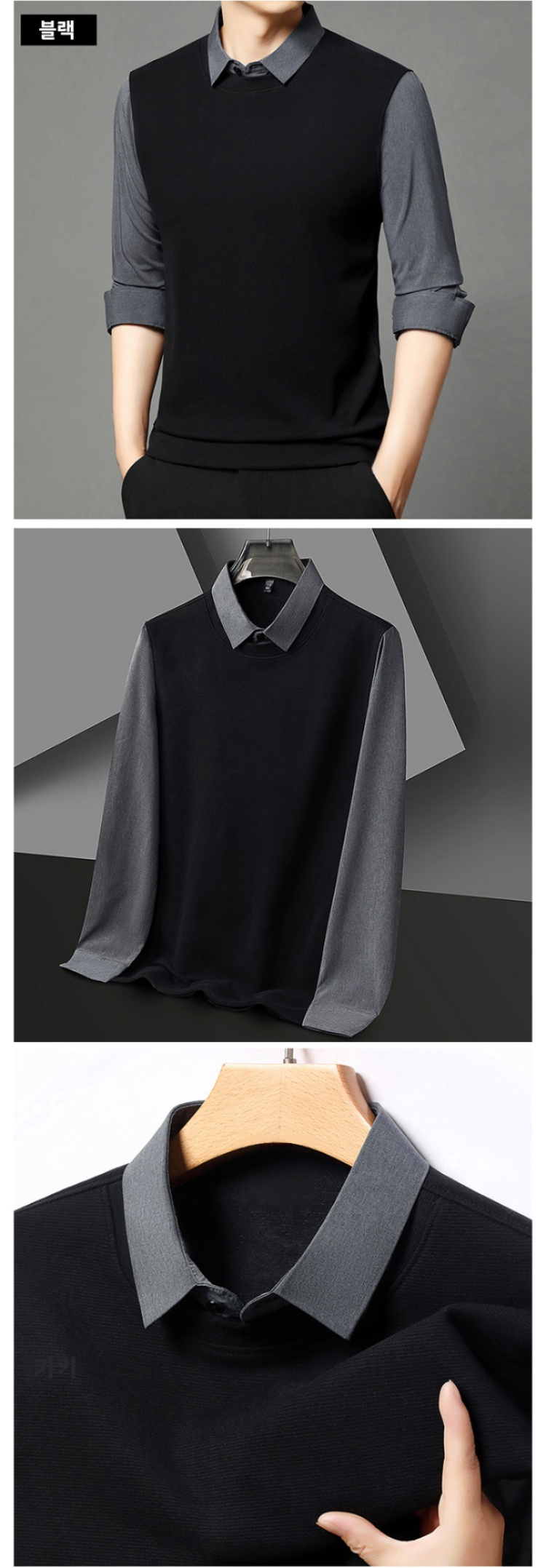 남성용 기본형 페이크 레이어드 긴팔 티셔츠